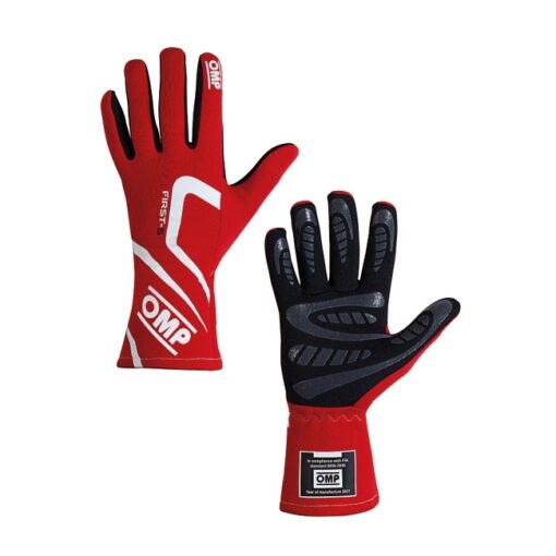 OMP FIRST-S – nehořlavé rukavice – FIA 8856-2018 červená